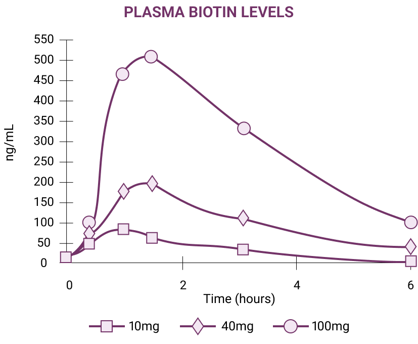 Hair Growth Acclerator’s key ingredient, Lustriva®, is a potent blend of bioavailable biotin and silicon shown to be 40X more soluble than regular biotin.